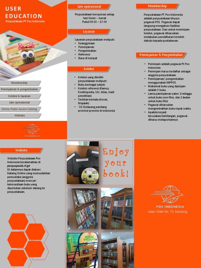 Dengan segala contoh tersebut, pamflet sudah diproduksi secara massal, tidak seperti buku pada masa itu yang sangat terbatas produksinya.23 di indonesia sendiri, kata pamphlet diserap ke. Disimpan difiling cabinet tidak muat, selain itu terus apa yang akan disimpan diruang buku dapat digunakan disembarang tempat, boleh dibawa pulang, dan boleh di foto copy. Sehingga dapat dicek ataupun diperiksa menggunakan suatu program komputer untuk memperoleh sebuah. Karena jika pengelola perpustakaan tidak melakukan managemen yang baik, alhasil banyak buku yang nantinya hilang. Bila ada pemustaka yang terbukti melanggar peraturan ini maka kepadanya akan dikenakan sanksi sebagai berikut: