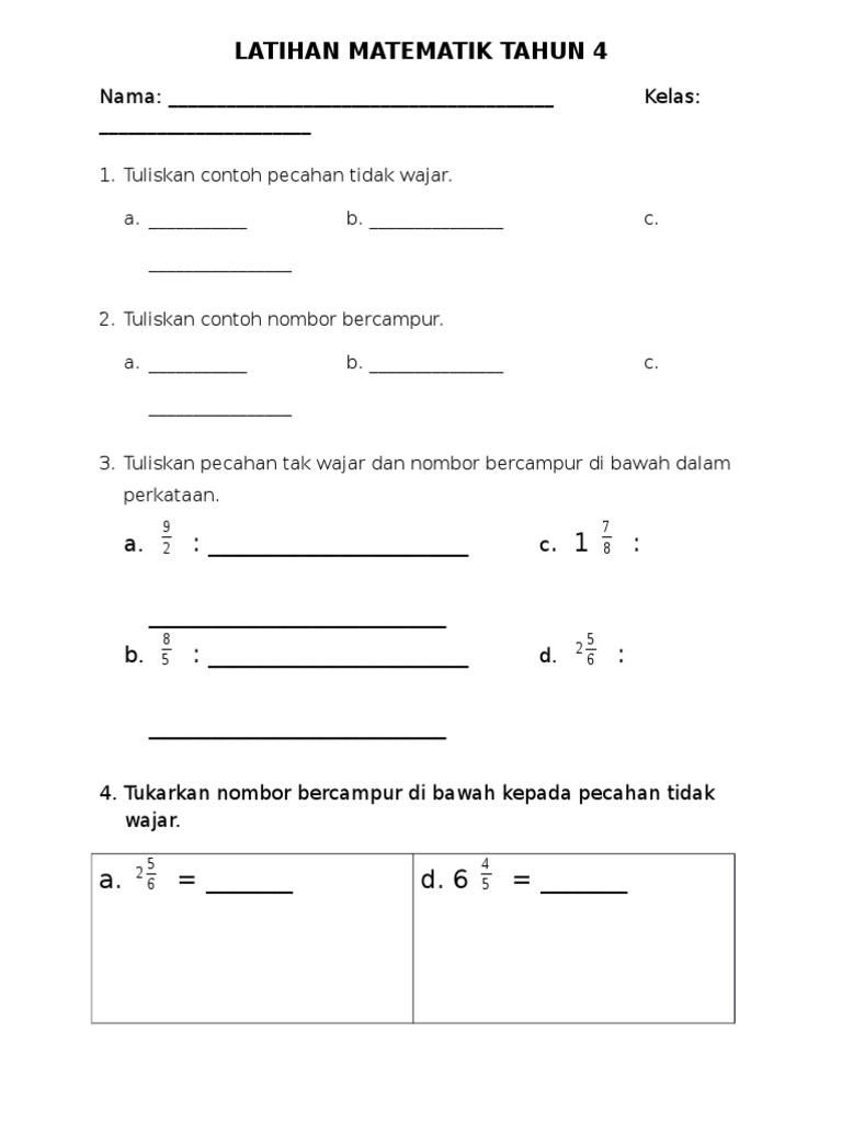 Ubah pecahan campuran menjadi pecahan tak wajar. Pecahan wajar dan pecahan tidak wajar. Pecahan wajar, pecahan tak wajar dan nombor bercampur online worksheet for tahun 3. Nurulsyafiqah 793 views1 year ago. 4.1 pecahan biasa, pecahan wajar dan pecahan tak wajar.