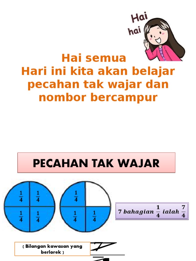 Rajah dibahagi kepada 9 1 3 4 bahagian, ada 4 yang 2 7 9 4 berlorek. Sebaliknya, pecahan tak wajar juga boleh ditukar menjadi nombor bercampur: Kebetulan simbol yang dipake untuk menjelaskan rumus integral fungsi eksponensial dan integral tak wajarnya sama, yaitu $a$. Matematik tahun 3 pecahan tak wajar dan nombor bercampur. Peratus standard pembelajaran murid boleh: